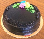 Two (2) layers of chocolate cake with caramel filling, iced with chocolate frosting.