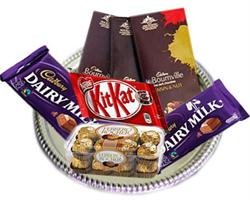 Cadbury Bournville Bars - 3 Nos Cadbury DairyMilk Choco Bars - 2 Nos,65gm each Kitkat Chunky Chocolate - 1 No Ferrero Rocher - 16 pcs