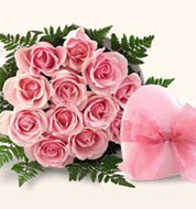 12 pink roses with heart shape chocolate(hershey kiss) box. Very decent to be given as a gift or just to give an unforgettable surprise.