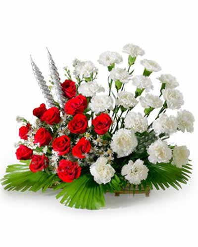 Exotic Arrangement of Mix Flowers 12 red roses with 1 dozen pink carnation.