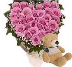 Let your sweetheart/ spouse know how much you miss being together. (heart shape 4 dozen pink roses and 8 " teddy bear).