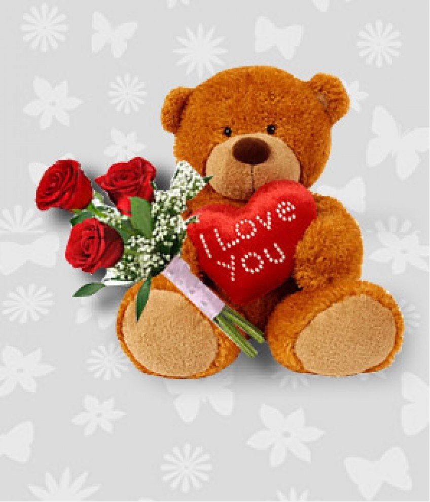 3 PCS. holland RED ROSES W/ 24" TEDDY BEAR and i LOve you pillow