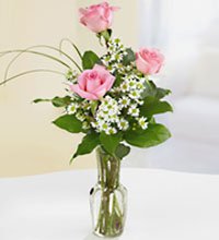 3 Pink imported holland Rose in a vase.