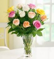 An ornate greeting to say how much the special person means to you. 12 mix roses in a vase.