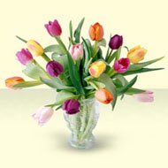 5 yellow tulips,5 blue and 5 white tulips become a beautiful love expression to your lovely person. Note: Color may vary.